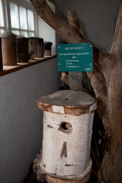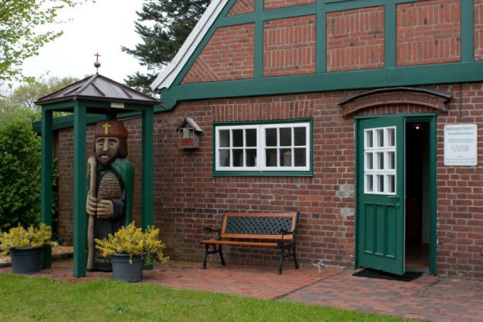 Begrüßt wird der Besucher links von der Eingangstür durch den heiligen Ambrosius, dem Schutzpatron u. a. der Imker und Zeidler, der seit November 2013 unter einem eigens für ihn erbauten Dach steht.